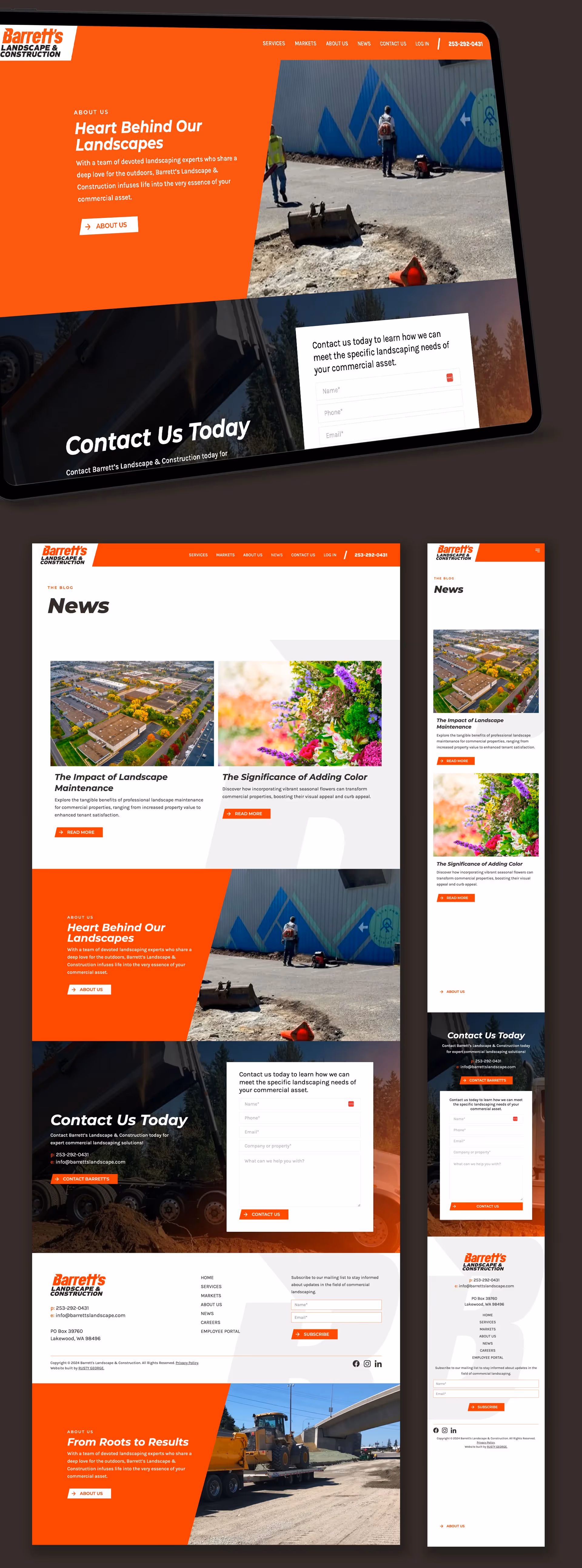 To address this challenge, we embarked on creating a website that would not only establish Barrett’s online presence but also effectively attract and engage their target audiences of HOAs, property managers, and individuals seeking extensive landscaping construction.