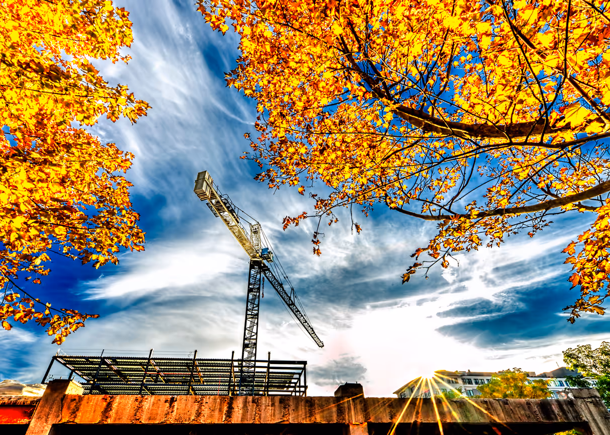 While fall weather can be unpredictable, the atmospheric variety presents plenty of opportunities for unique imagery. For example, mist and fog – combined with the morning golden hour – can lead to stunning images that will set you apart from the competition. Fall light also allows for experimentation with different angles. Go wide, go close, go macro. If you get your timing perfect and get a little playful with your images, you can tell a great story of good construction in a picture-perfect environment.